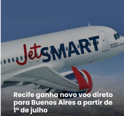 A Prefeitura do Recife, através da Secretaria de Turismo e Lazer, anunciou nesta terça-feira (18) um novo voo direto entre Recife e Buenos Aires, operado pela companhia JetSMART. O voo inaugural está programado para o dia 1º de julho.